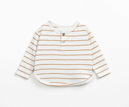 Camel Stripe Long Sleeve Button Top