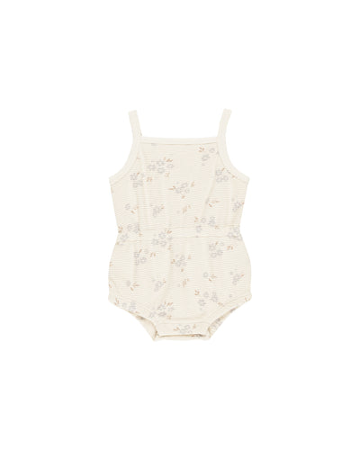 Blue Ditsy Waffle Cinch Romper