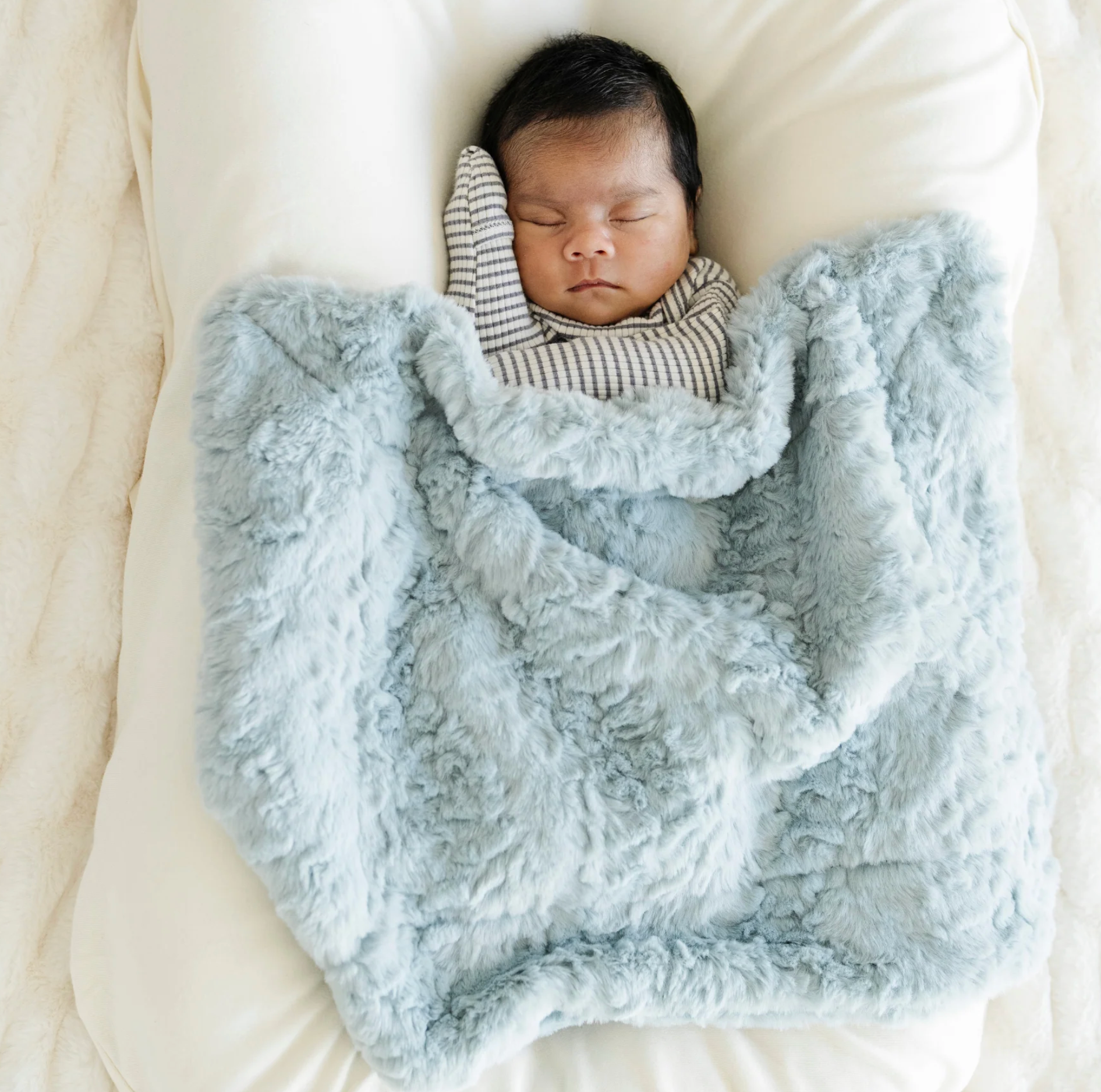 Fabric - Faux Fur poly microfiber. These blankets are hand-sewn–(by hands we know and love!)