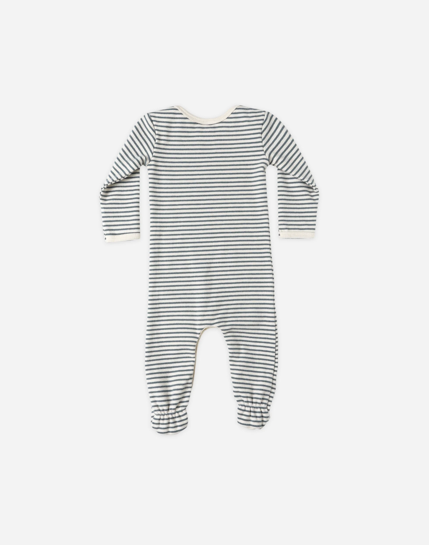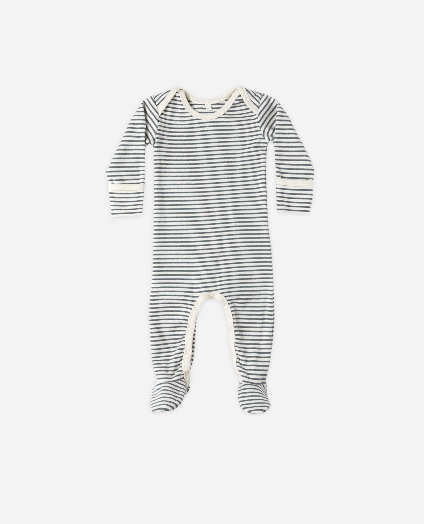 Our Footed Jumpsuit is designed for comfort and ease, with lap sleeves and snaps along the inseam for easy changes. Sizes NB, 0–3m, and 3–6m include fold-over hand mitts, while size 6–12m features grips on the soles to support little movers.